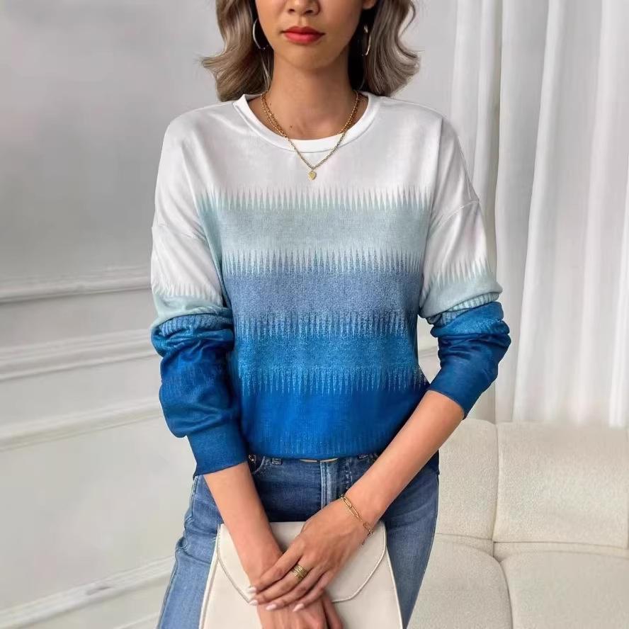 Women's Plus Size Gradient Color Round Neck Long Sleeve Casual Hoodie for Spring and Autumn 2026
