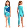 Kids Girls Stage Performance Jumpsuit: Mock Neck Shiny Sequins Color Block Asymmetrical Cut with Back Invisible Zipper