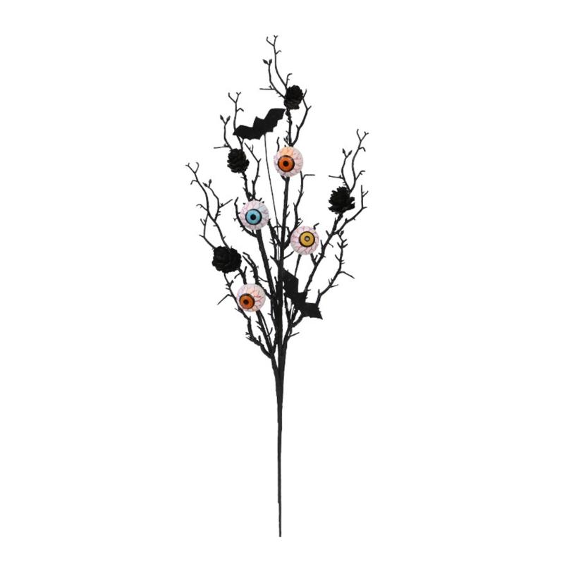 Halloween Decoration Artificial Flower Stem with Realistic Leaf Pinecones Bat Eyeballs for Halloween Table Centerpieces