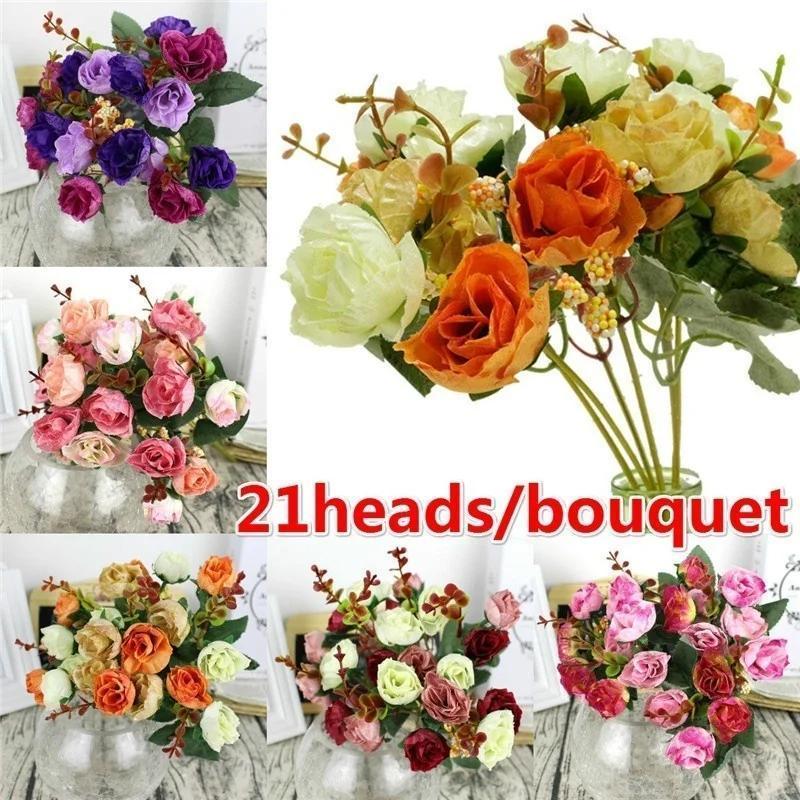 21 Heads Artificial Rose Garden Flower Arrangement Decor Home Decorative Flowers Artificial Silk Rose Artificial Rose Flowers