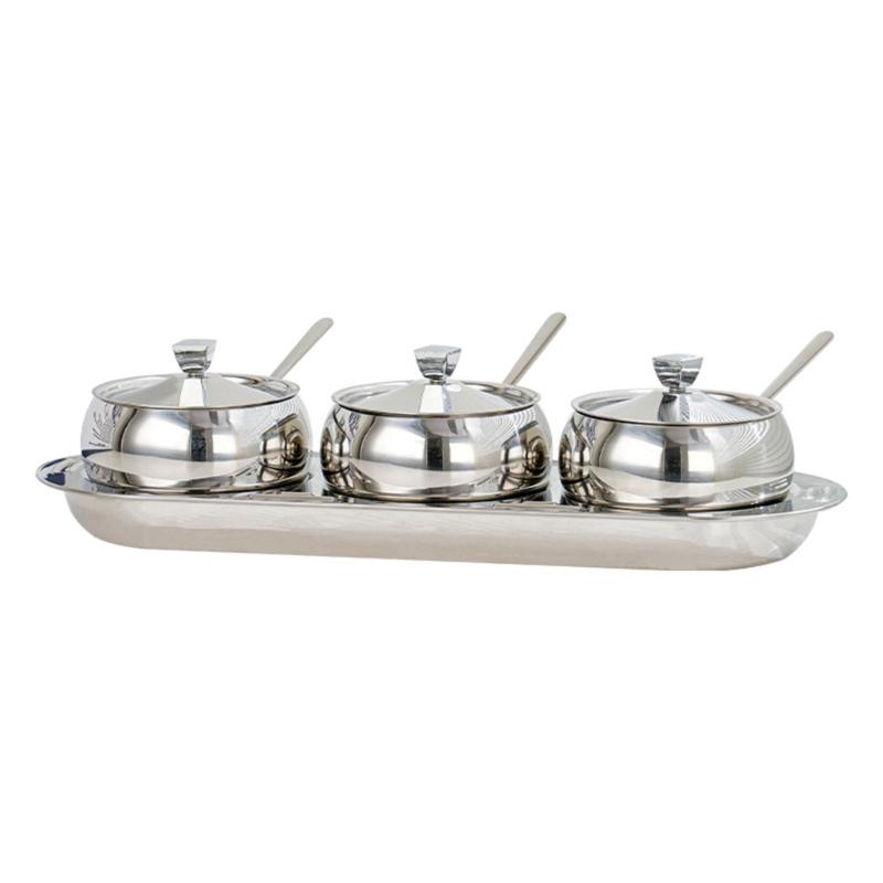 Durable 304 Stainless Steel Condiment Container Set With Lid And Spoons Spices Storage Solution For Home Use
