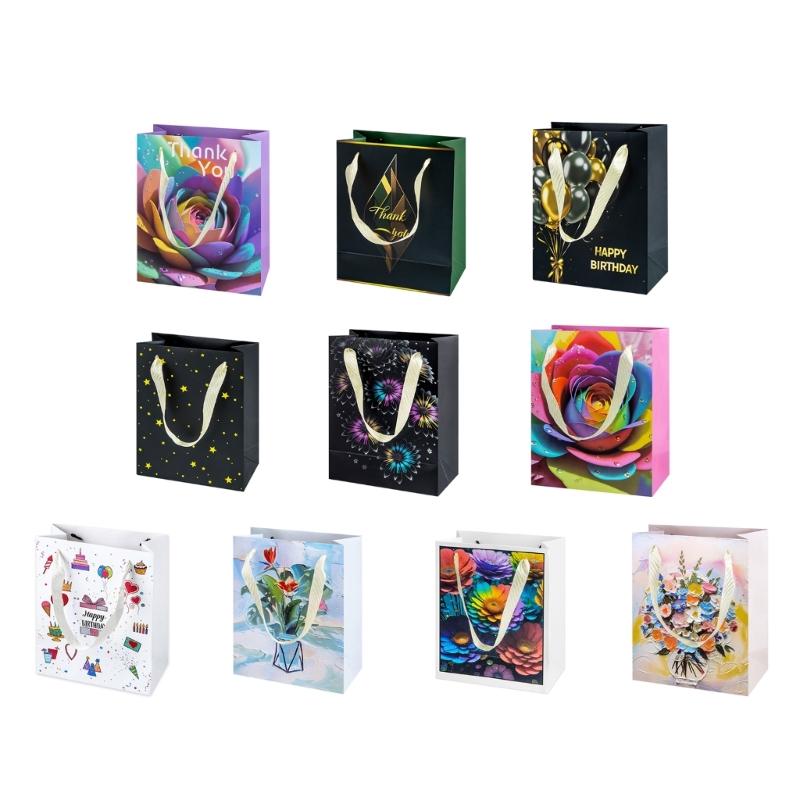 10 Pieces Multicolors Paper Bags Stylish Holiday Present Storage Pouches Handmade Assorted Color Gift Bag with Handles