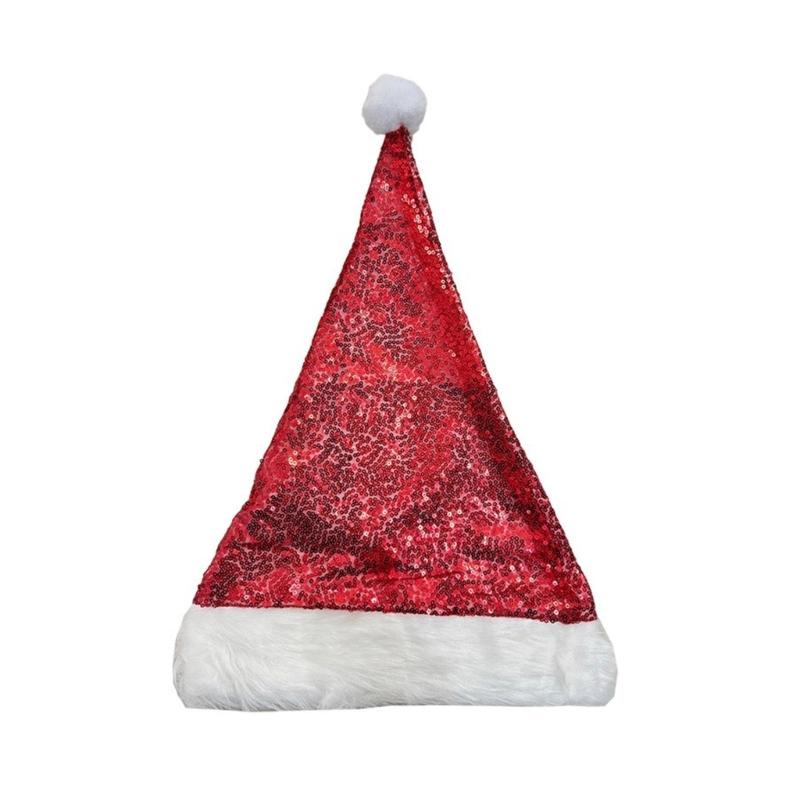 Shimmering Christmas Hat for Adult Kids Santa Caps with Furry Trim Festival Costume Noel Hat Holiday Sequined Hat