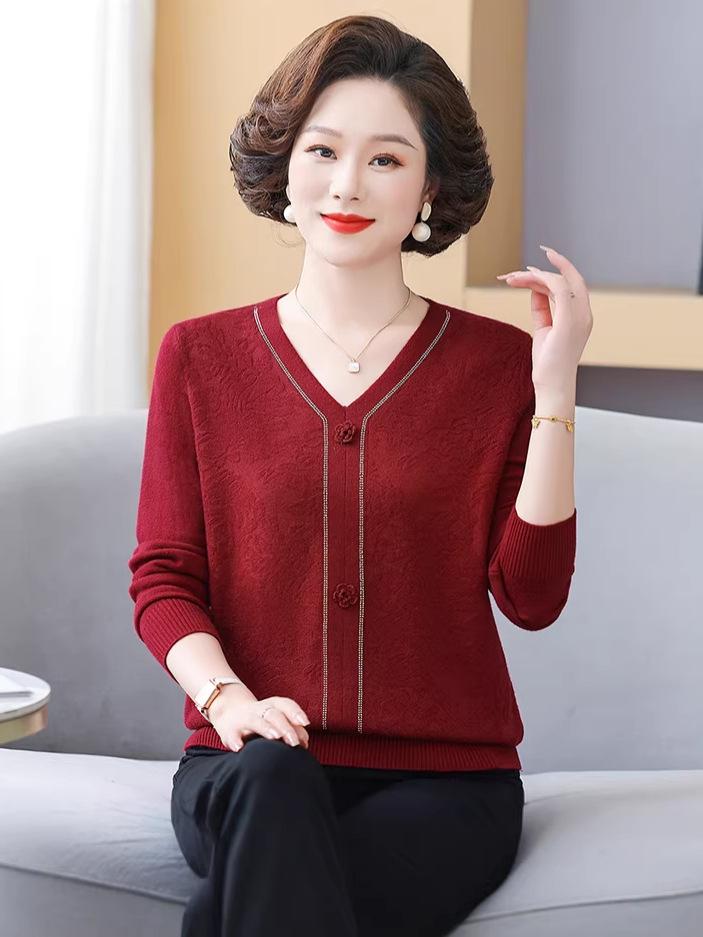 Spring/Fall Thin Knitwear for Middle-Aged & Elderly Women: Stylish Stretch Pullover