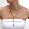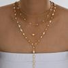 Boho Gold Color Multi-Layer Necklace Set for Women Fashion Zircon Bow Knot Water Drop Heart Pendant Necklaces Jewelry