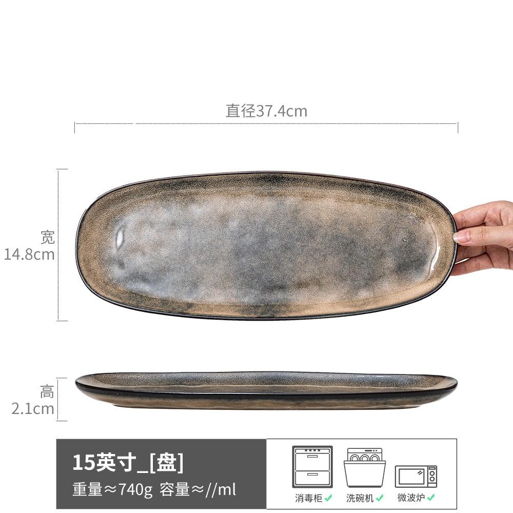 Fish Plate Household High-End Oval Plate Household Ceramic Plate Vegetable Plate Retro Tableware Large Western Food Plate