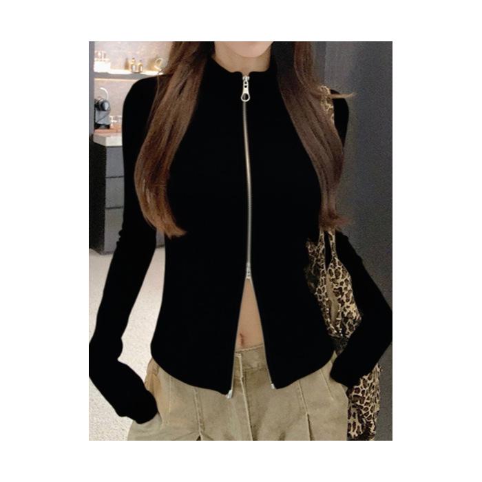 Experience effortless style and comfort with this chic waist-cinched cardigan, designed specifically for petite women. Crafted from a polyester-spandex blend, it offers a perfect stretch and fit for the ultimate in all-day wearability. Featuring a unique dual-zip design, this cardigan allows for versatile styling options while ensuring a flattering silhouette. The stand-up collar adds a modern twist, making it a great choice for both spring and autumn wardrobes. Its long sleeves provide just the right amount of coverage, making it an ideal layering piece for those cooler days.