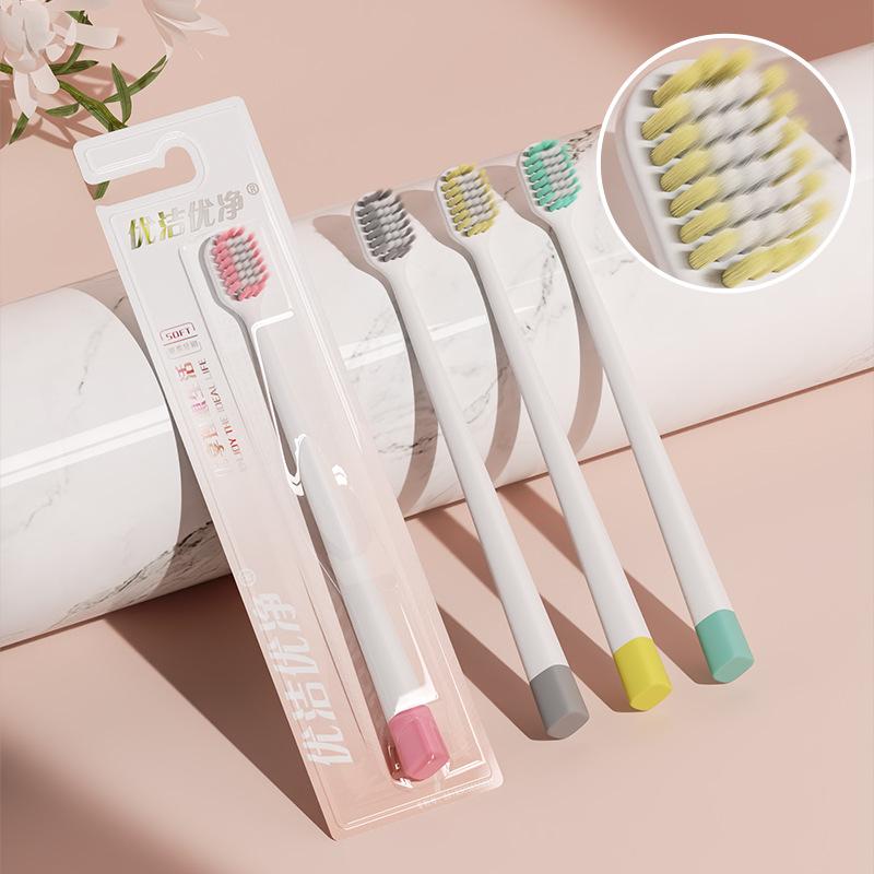 Simple gentle fine soft bristled toothbrush, anti slip handle with tongue scraper, household wide brush head cleaning toothbrush