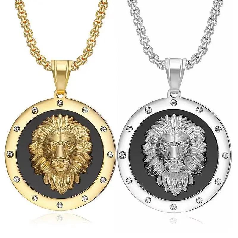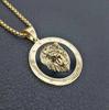 Fashion Domineering Lion Head Round Medal Pendant Necklace Inlaid Zircon Men's Hip Hop Trend Party Jewelry