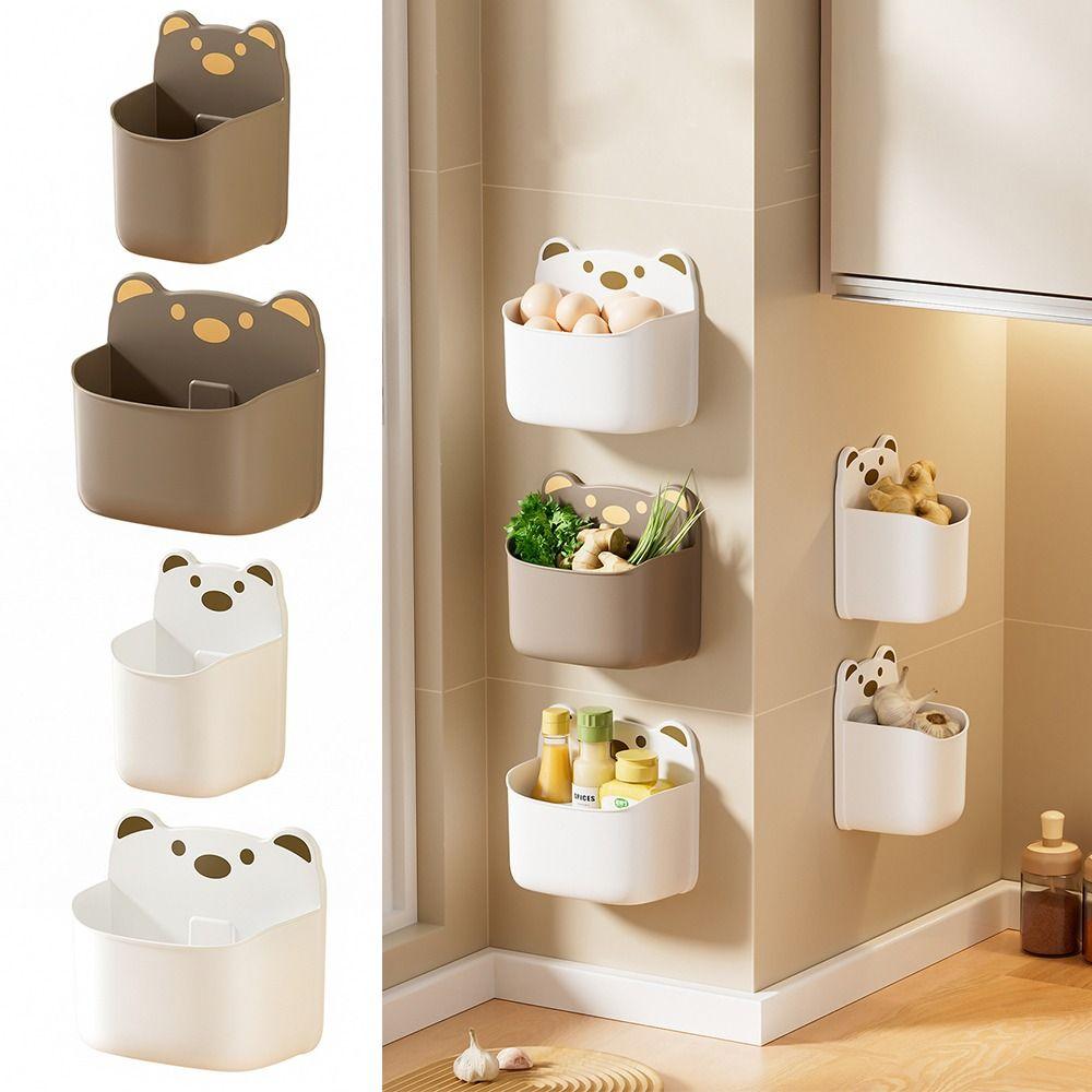 Self Adhesive Wall Mounted Storage Box Cartoon Bear Pen Holder Cute Storage Shelf Kitchen Bathroom