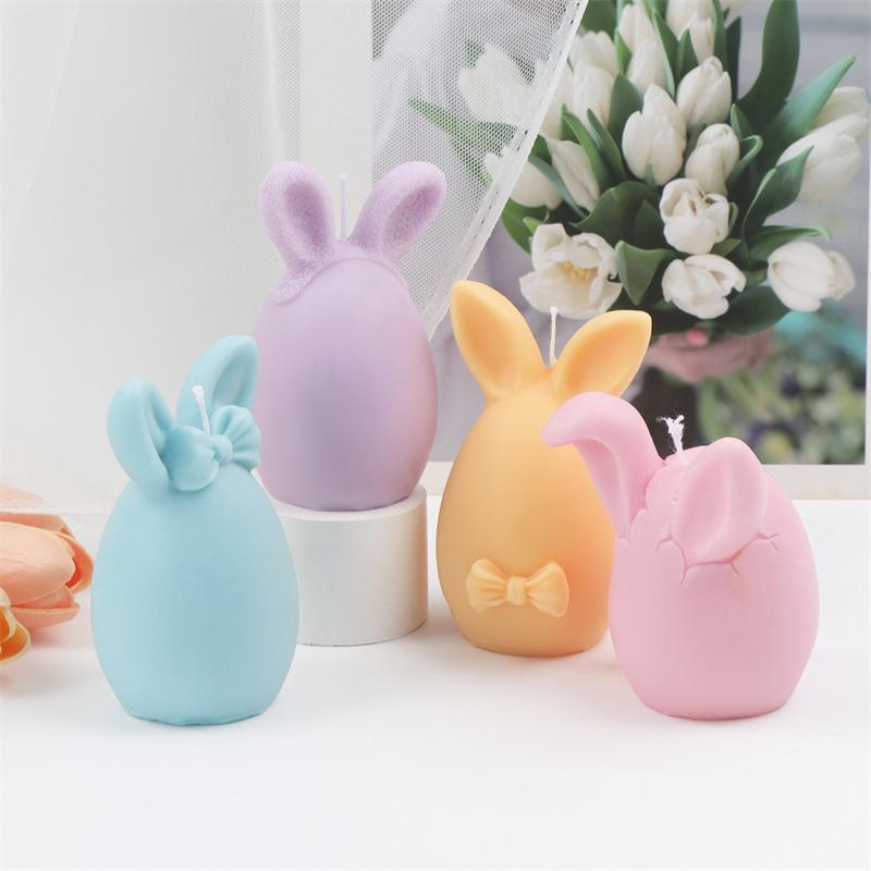 Easter Bunny Egg Silicone Candle Mold DIY Cute Spring Easter Egg With Bowknot Rabbit Ear Sculpture Candle Soap Decoration Party