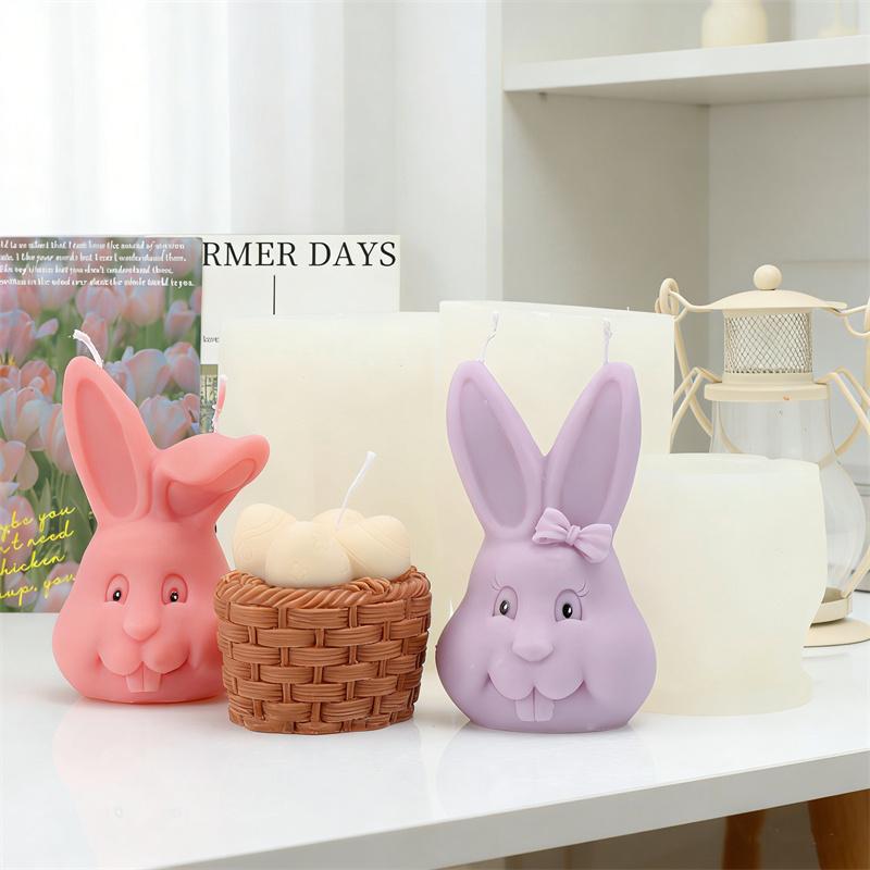 Easter Bunny Silicone Mold DIY Bowknot Grinning Rabbit Basket EggShape Multi Purpose Candle Plaster Tool Managed Holiday Decor