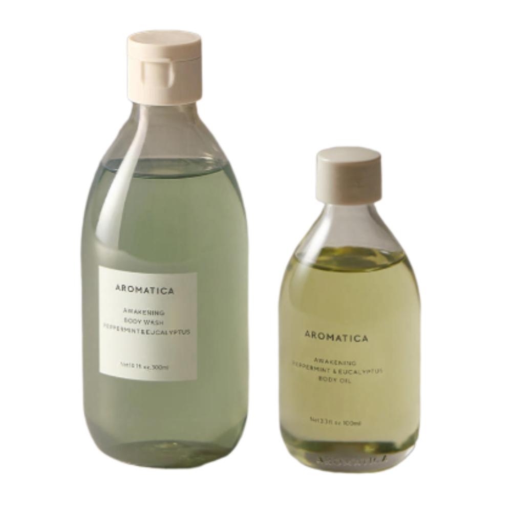 SEO Keywords: AROMATICA, Awakening Body Wash, Peppermint Body Oil, Refreshing Body Care Set, Korean Body Oil, Vegan Body Cleanser, Cooling Skin Care, K-Beauty Body Duo, Eucalyptus Essential Oil, Muscle Relief Oil, Natural Body Wash, South Korea Beauty.