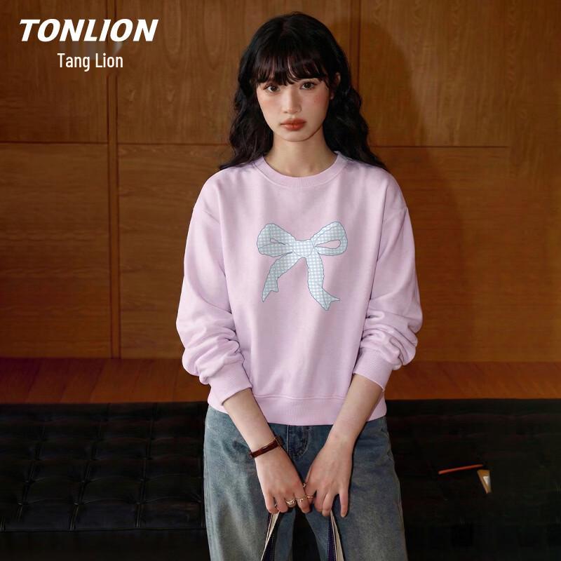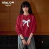 TonLion Women's Loose Bowknot Crew Neck Sweatshirt