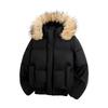 Stay warm and stylish this winter with the Couple's Winter Leather Down Jacket. This short and loose-fitting jacket is designed for optimal comfort and mobility, making it perfect for outdoor activities. It features a thickened design to keep you cozy in chilly weather, and the large fur collar and hood add a touch of luxury and additional warmth. Made from high-quality polyester materials, including polyester fiber fur, this jacket offers durability and a trendy look for couples seeking both elegance and functionality.