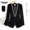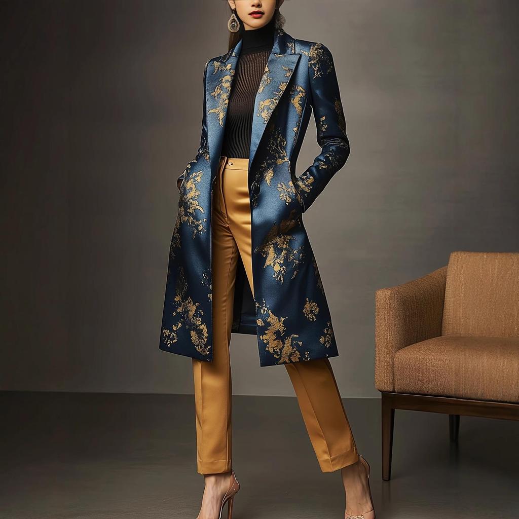 Women's Satin Print Mid-Length Suit Jacket - Elegant Spring/Autumn Style