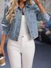 Trendy European Women's Short Denim Jacket with Rivet Details by SHEIN