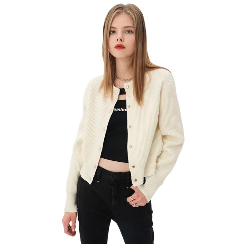 Jin Yujie Women's 22% Wool Blend Round Neck Knit Cardigan