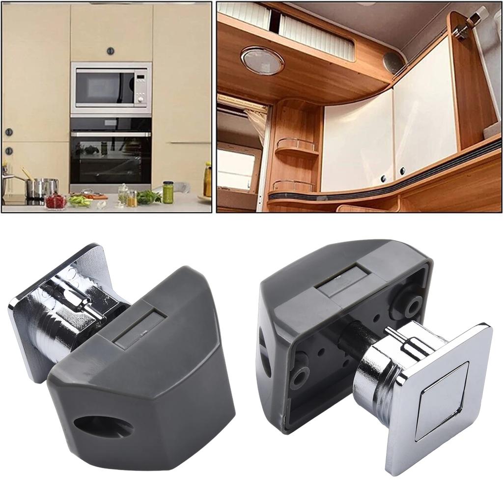 Cabinet Door Push Button Catch Lock with Handle Locking Mechanism for Motorhome RV Caravan Camper Zinc Alloy Material Use