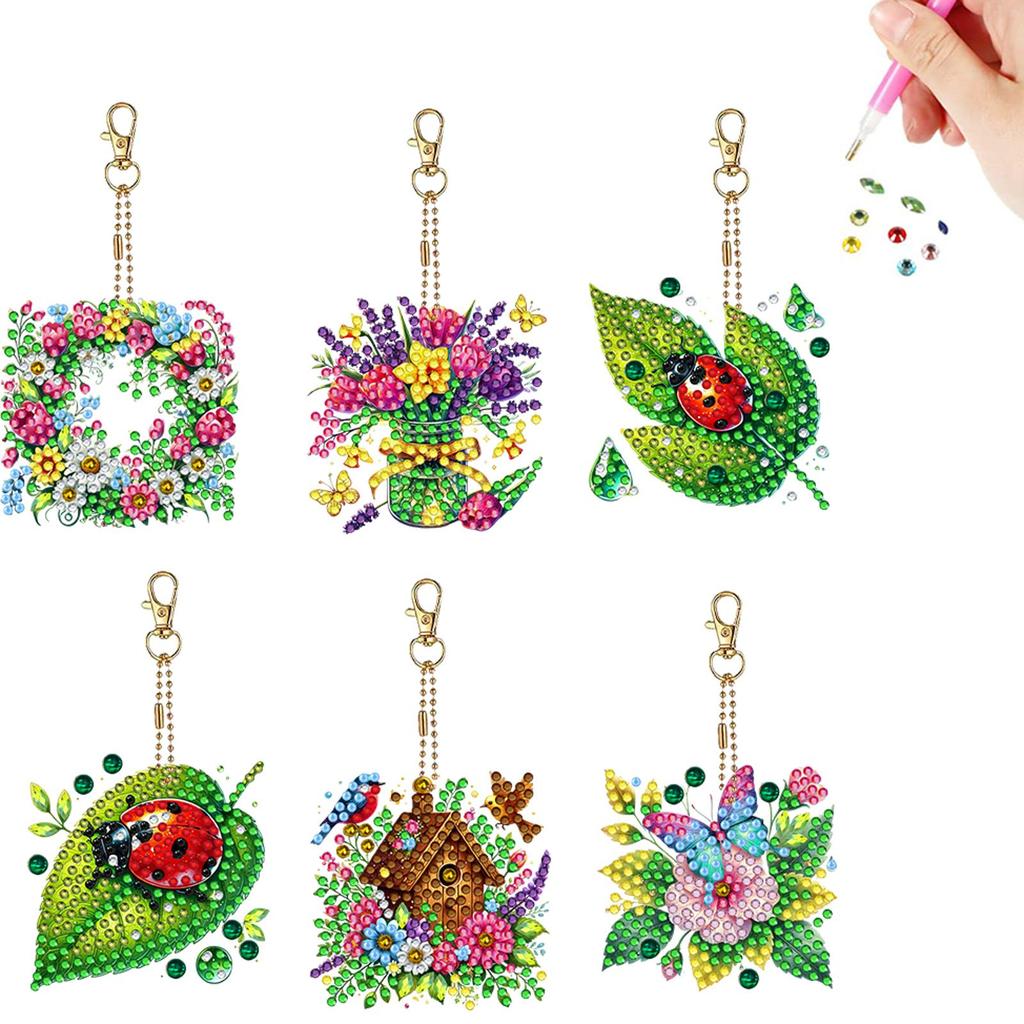 6Pcs DIY Special Shape Diamond Art Painting Keychain Kit Crystal Rhinestone Diamond Mosaic Key Chain Unique Handmade Gift