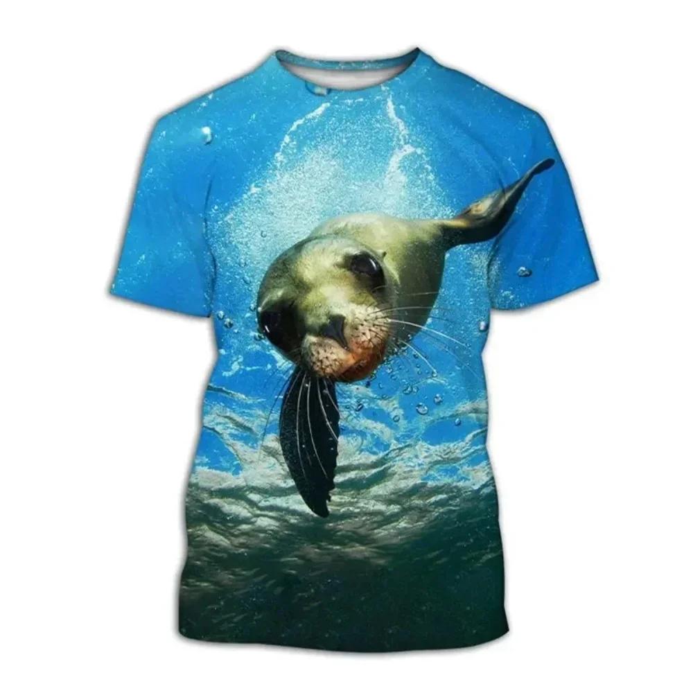 Summer New Fashion Fun Seal T-shirt Animal 3D Printed Street Clothing Male Female Casual Fashion Oversized Short Sleeve tops