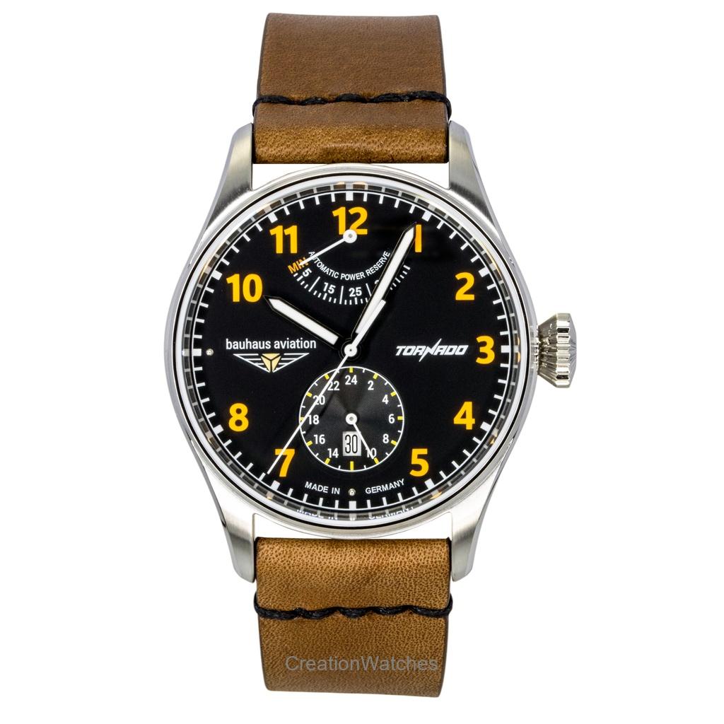 Bauhaus Aviation Tornado Leather Strap Black Dial Automatic 27905 Men's Watch