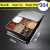 An imported, thickened stainless steel spice box set with a lid, featuring a six-grid design for organized storage of condiments and seasonings. This durable and practical set is perfect for any kitchen.