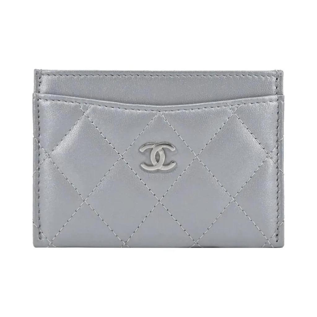 CHANEL brand logo diamond pattern calfskin card holder female style gray