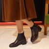 נשים עגול בלוק בוהן עקב נמוך מגפי צ'לסי שחור החלקה על עור פטנט מגפי קרסול נעליים נוחות ללא החלקה