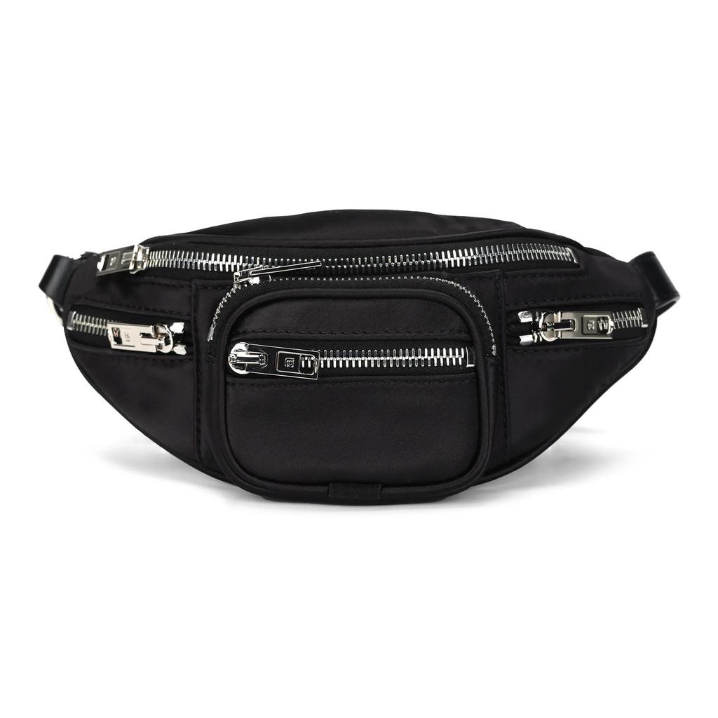 Alexander Wang Double-Zip Satin Crossbody Waist Bag Polyester Mini Unisex Couple Style Black