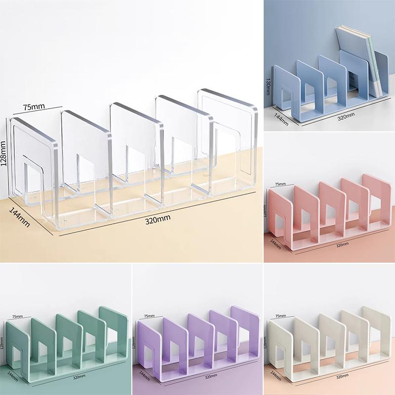 4 Grid Clear Acrylic Bookend Desktop Organizer for Books, Magazines, Space Saving Modern Design Home Office Study Library Shelf