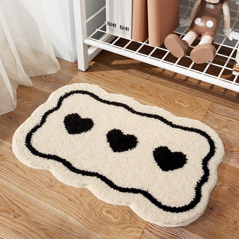 Bathroom Absorbent Floor Mat Love Heart Pattern Plush Thick Carpet Toilet Kitchen Entrance Door Anti Slip Foot Mat Modern Rug