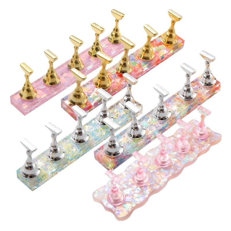 1 Set Iridescent Heart Sequins Magnetic Nail Holder False Tips Practice Stand Nail Art Display Salon Diy Tools