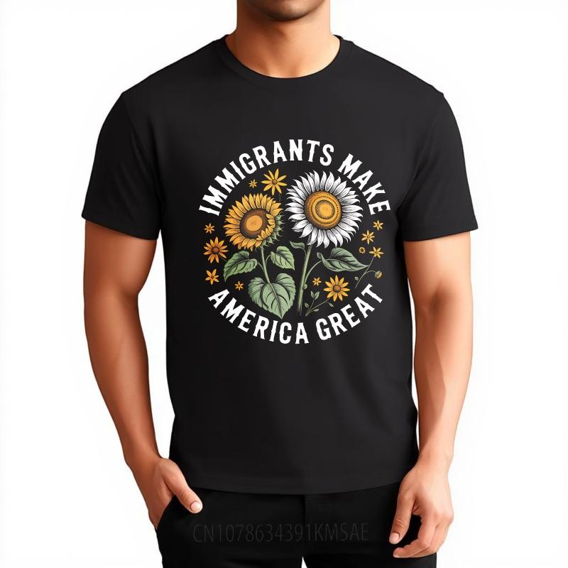 Vintage Summer Boys Tshirt Immigrants Make America Great Sunflowers Design Short Sleeve Rock Crew Neck Tee Shirt Teeshirt Male