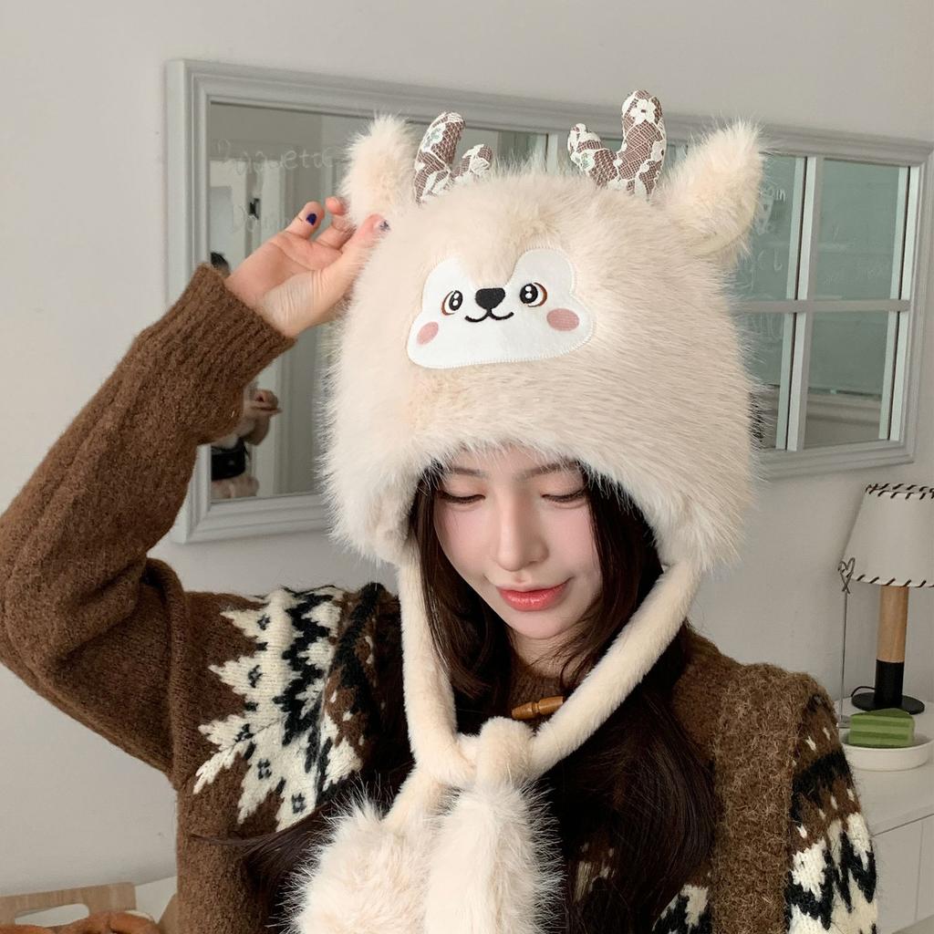 Antlers plush hat women's autumn and winter warm Lei Feng hat Christmas hat cute elk ear protection pullover hat