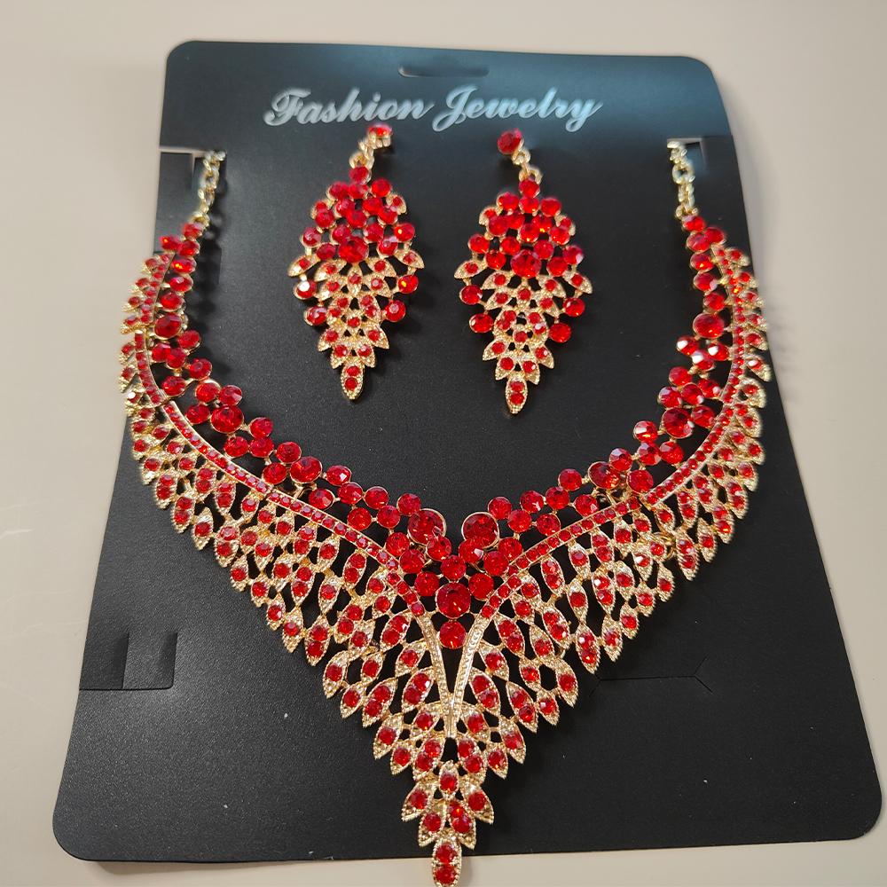 Luxury Jewelry Set Wholesale Elegant Bridal Wedding Prom Red Crystal Statement Earrings Rhinestone Choker Necklace for Women