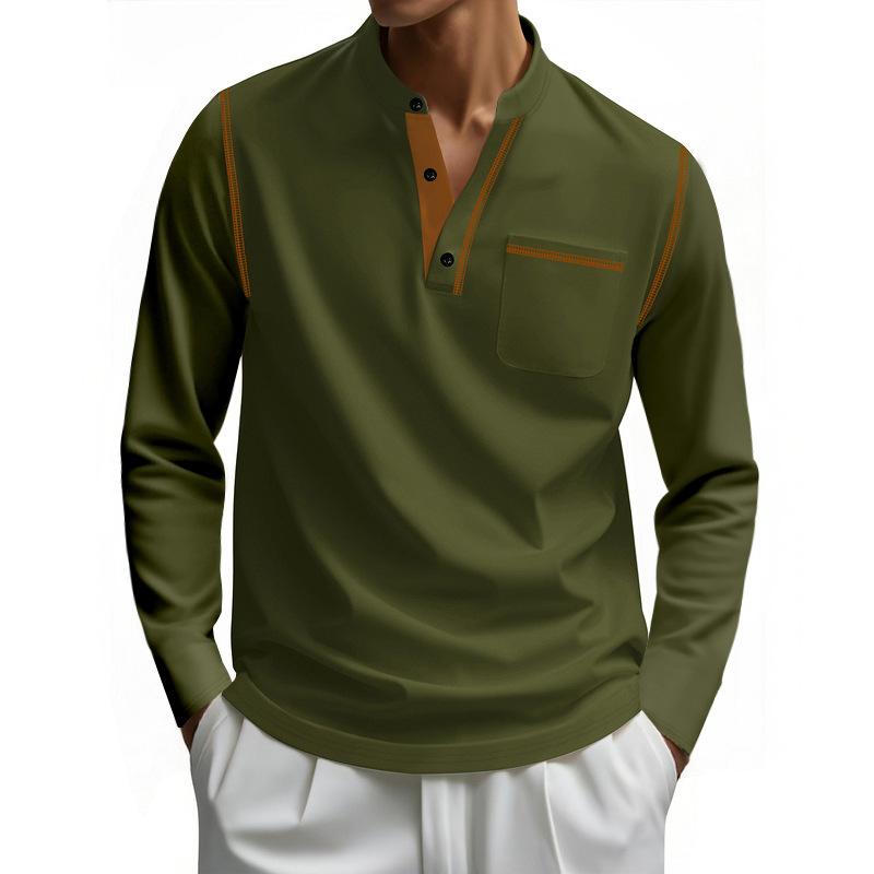 Autumn New Men's Long Sleeve Casual T-Shirt Henley Shirt Color Block Wholesale