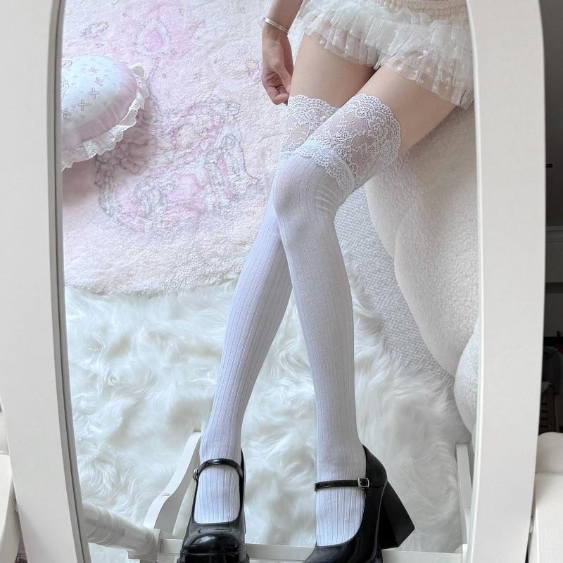 Japanese Lace Lace Knee Socks Vertical Stripe High Tube Bottom Knee Cotton Thigh Socks
