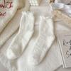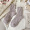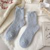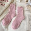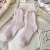 Fungus Edge Coral Fleece Socks Women'S Winter Warm Feet Thickened Warm Medium Tube Home Floor Socks Lace Solid Color Women'S Socks