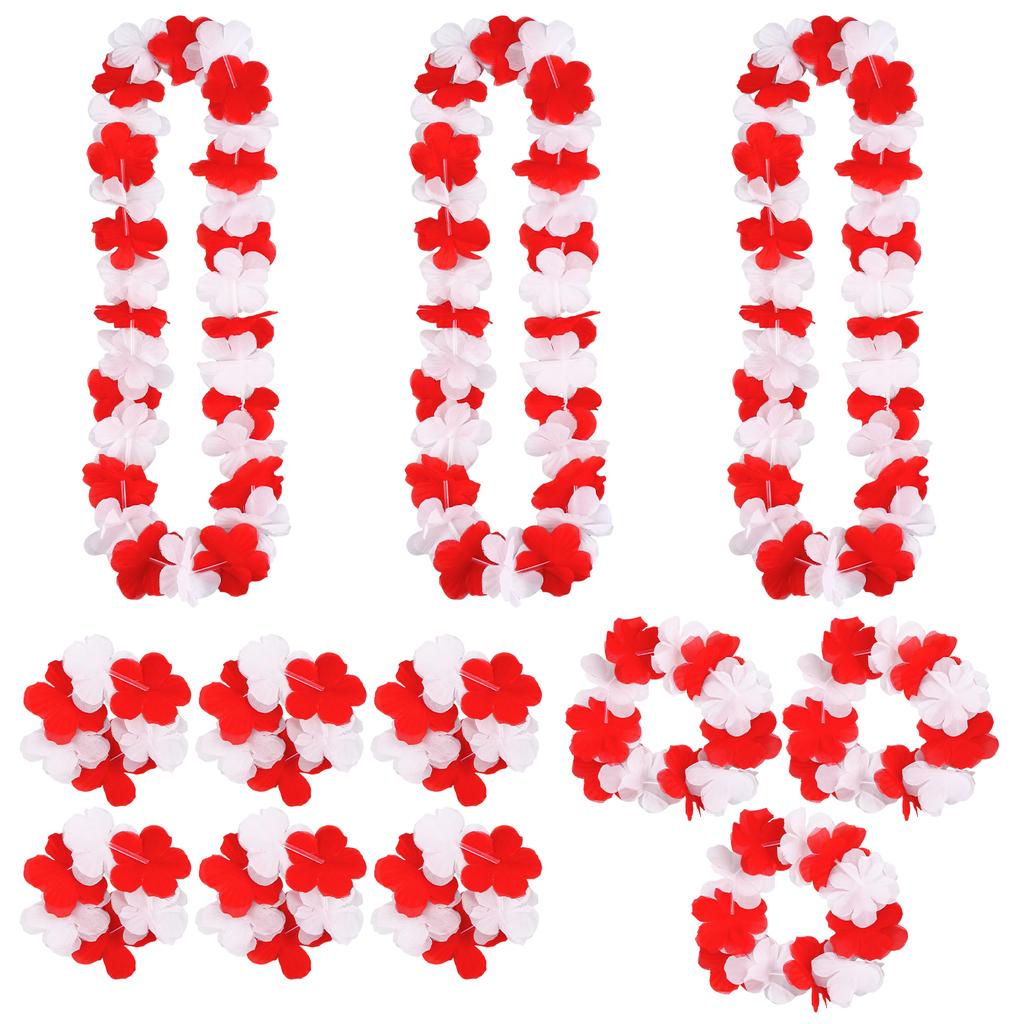 12 Stk Karneval Blumenkette Rot Weiß, Karneval Deko Hawaii Kette Blumen, Karneval Accessoires, Bunte FrüHlings- & Partydekoratio