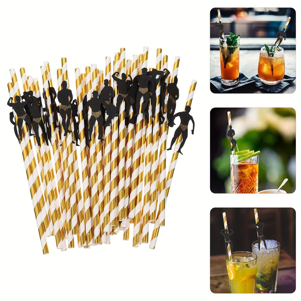 Kraft Paper Straws, Colorful Striped, Perfect For Party Decorations, Desserts, Pastries, Bars, And Drinks. 36 Pieces.