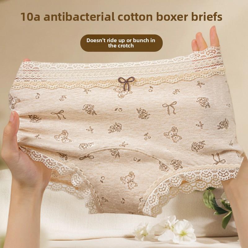 Ladies Spring and Autumn Lace Cotton 10A Antibacterial Cotton Long Crotch Waist Flat Angle Briefs