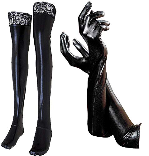 These bizarre-style long gloves and knee-high socks with lace create a seductive look.