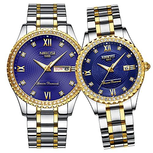 NIBOSI Couple's Diamond Watches: Exquisitely designed and securely set. The elegant dial design, combined with exquisite watchmaking craftsmanship, brings you the most ideal wearing experience. Wear this watch for business, leisure, and everyday use, indoors and outdoors, it's perfect for you and your friends. This luxury dress watch is delivered quickly by Amazon and perfectly delivered to your designated address.