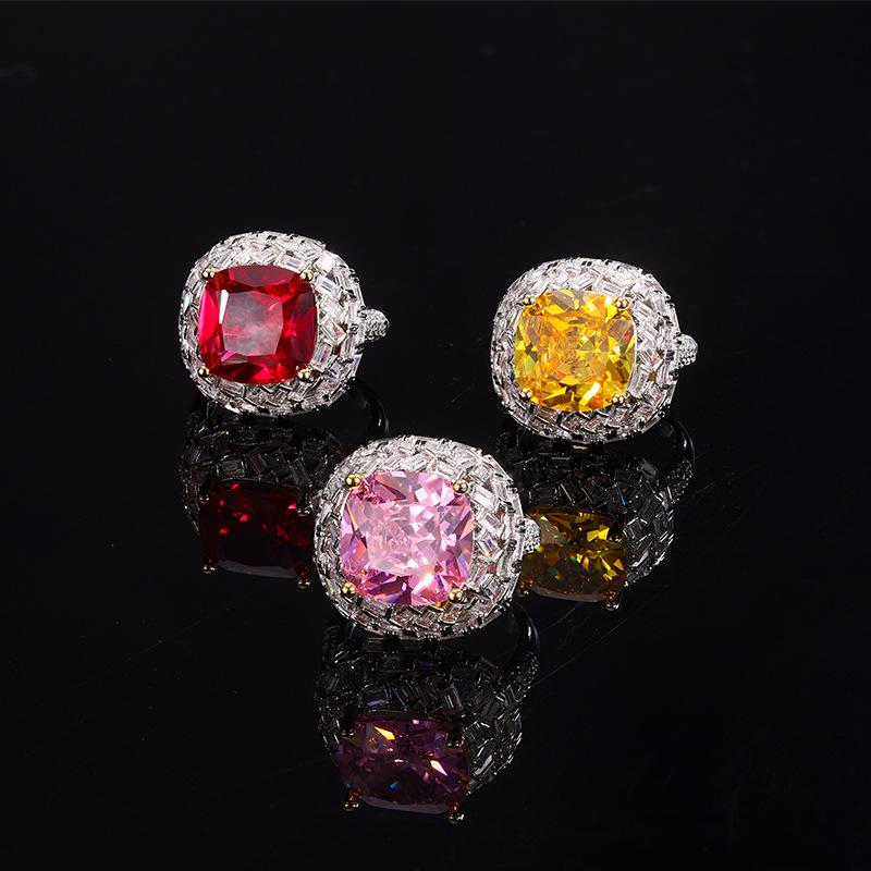 Caibao Square Color Separation Electroplating Powder Yellow Red Corundum Ring Copper Jewelry Zircon Live Streaming Open