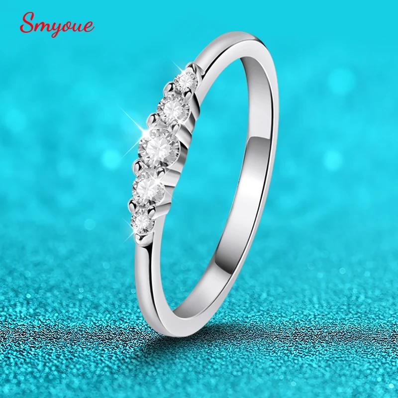 Smyoue 0.13CTTW 2.5mm Certified Moissanite Rings for Women 5 Stones Sparkling Silver 925 Wedding Band Mach Diamond GRA