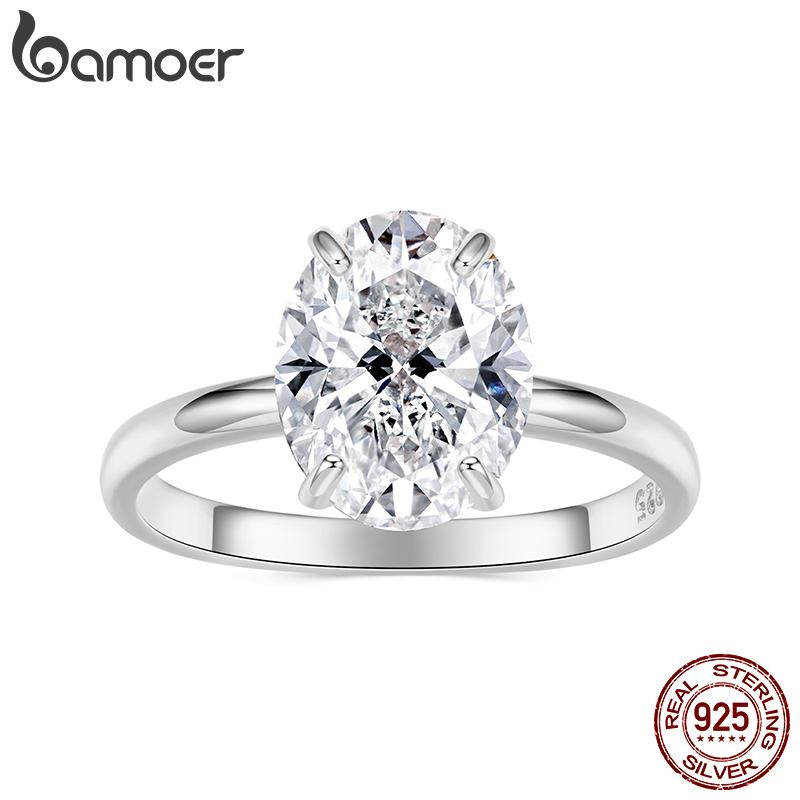 BAMOER 3.5CT CZ Oval Cut Ring 925 Silver 4 Prongs Halo Engagement Band Ring for Women Wedding Promise Jewelry Gift