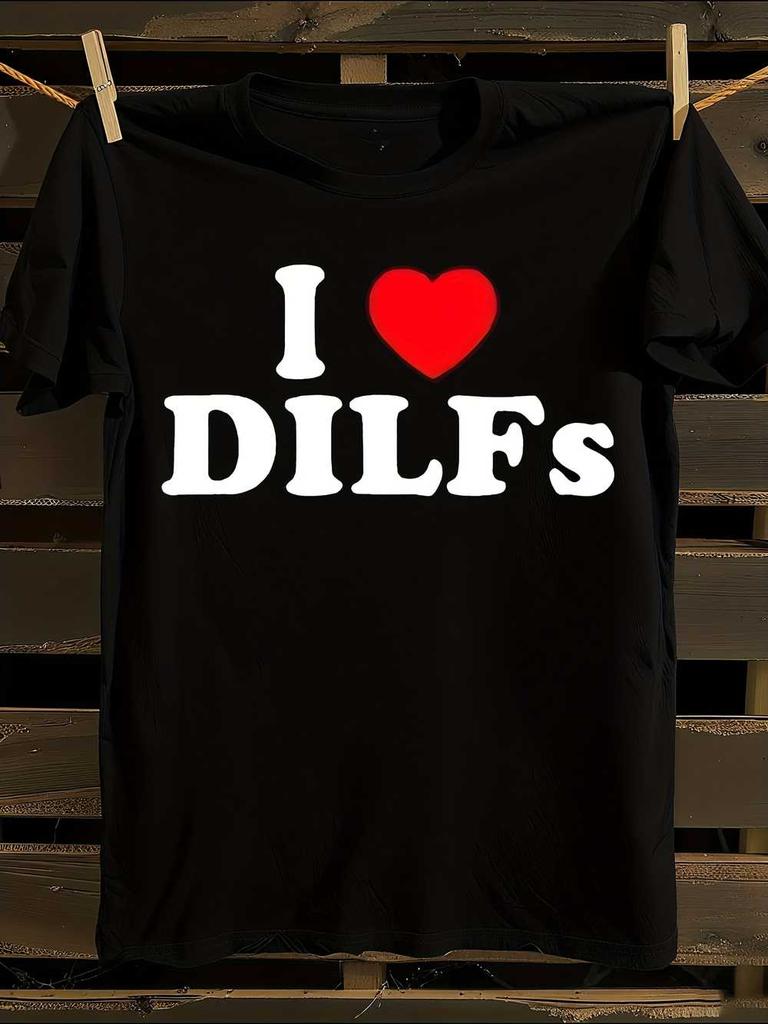 Funny I Love DILFS & Heart Graphic T-Shirt Mens Tshirt Womens Tshirts with Letters Print Short Sleeves T-Shirt Casual Street Tee Shirt Top