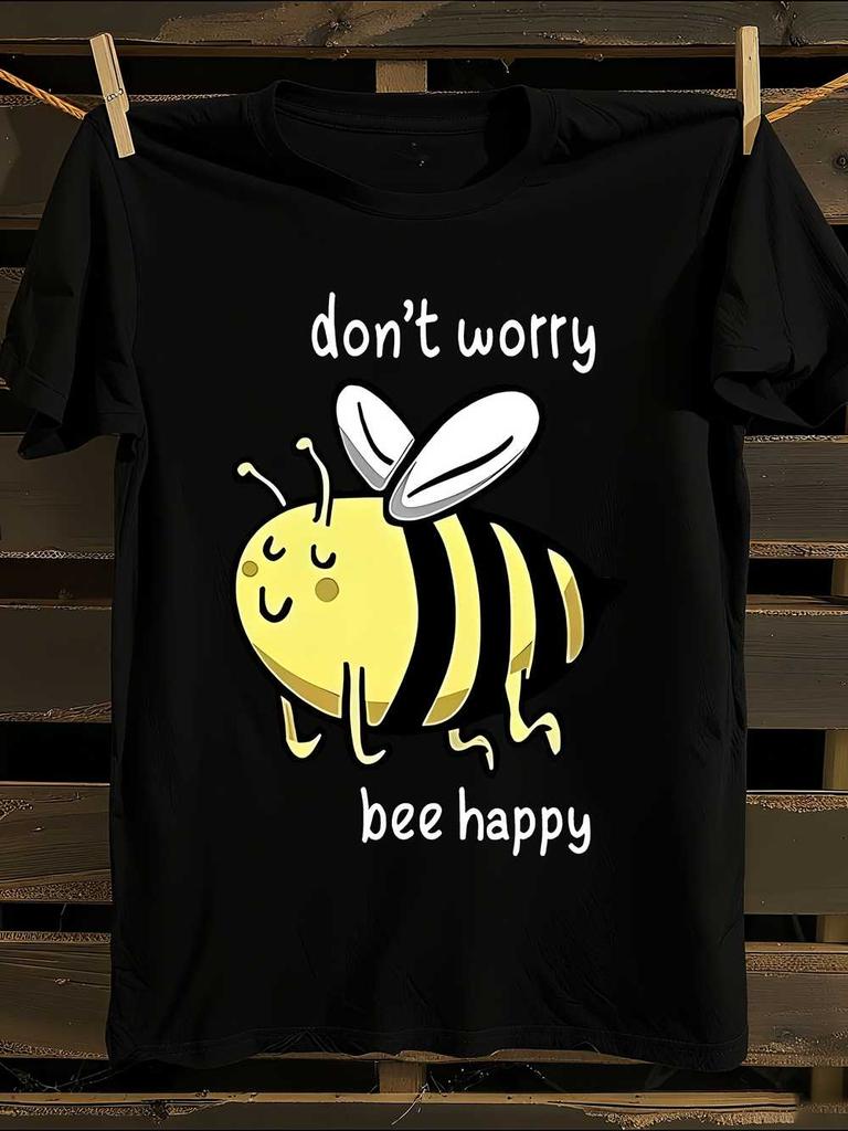 Funny Bee Happy Graphic T-Shirt Mens Tshirt Womens Tshirts with Letters Print Short Sleeves T-Shirt Casual Street Tee Shirt Top