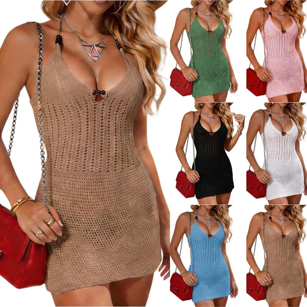 Women's Beach Dress Hollow-out Knit Bikini Cover-up Sun Dress